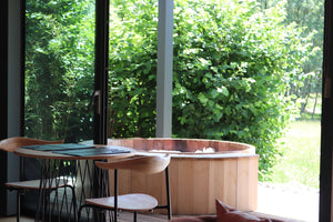 Votre lodge haut de gamme dispose d'un spa tout en bois sur sa terrasse couverte par une pergola Bioclimatique.